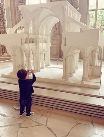 昆凌22日在個人社交網站發文:“哥的文青一日游?!辈癯鰩鹤拥桨屠璨┪镳^的萌照,只見2歲的Romeo穿著黑色上衣,搭配格紋的寬褲,手裡正拿著照相機,認真又專業地拍照,看似架勢十足,她更逗趣地說:“興趣從小培養!”