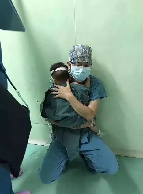 日前,一位1歲5個月大的患兒,在陜西漢中市人民醫(yī)院進行了胸壁膿腫切開引流術(shù)。小孩醒來后,心生畏懼大哭不止,麻醉醫(yī)師張華軍便將她從手術(shù)室臺上抱了起來。
