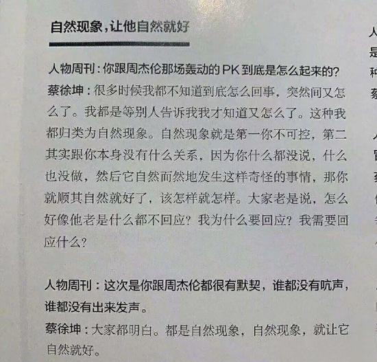 網易娛樂9月24日報道 近日,蔡徐坤在接受采訪時被談及與周杰倫在超話排名榜上競爭第一事件,回應道:“這種我都歸類為自然現象。第一你不可控,第二其實跟你本身沒什么關系,因為你什么都沒說,什么也沒做,然后他自然而然地發生這樣奇怪的事情,那么你就順其自然就好了,該怎么樣就怎樣。大家老是說,怎么他老是什么都不回應?我為什么要回應?我需要回應什么?”
