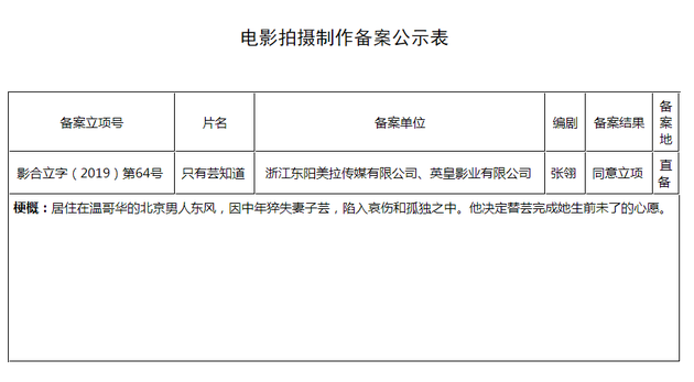 網(wǎng)易娛樂9月24日報道 國家電影局2019年7月(中旬)備案、立項公示出爐。馮小剛新作《只有蕓知道》、翁子光新作《圣何塞謀殺案》、邱禮濤新作《我的未來不是這樣》等獲準(zhǔn)立項。