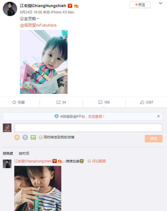 網易娛樂9月25日報道 9月24日,江宏杰在微博曬出女兒的萌照,并直呼“公主來了”。照片中,女兒身穿彩色連衣裙,扎著高高的小辮子,手中緊緊抱著HELLO KITTY的玩具,萌態十足。江宏杰還在評論中曬出老婆福原愛喂女兒喝水的溫馨照,大贊愛妻“媽媽也美”,秀足了一番恩愛。