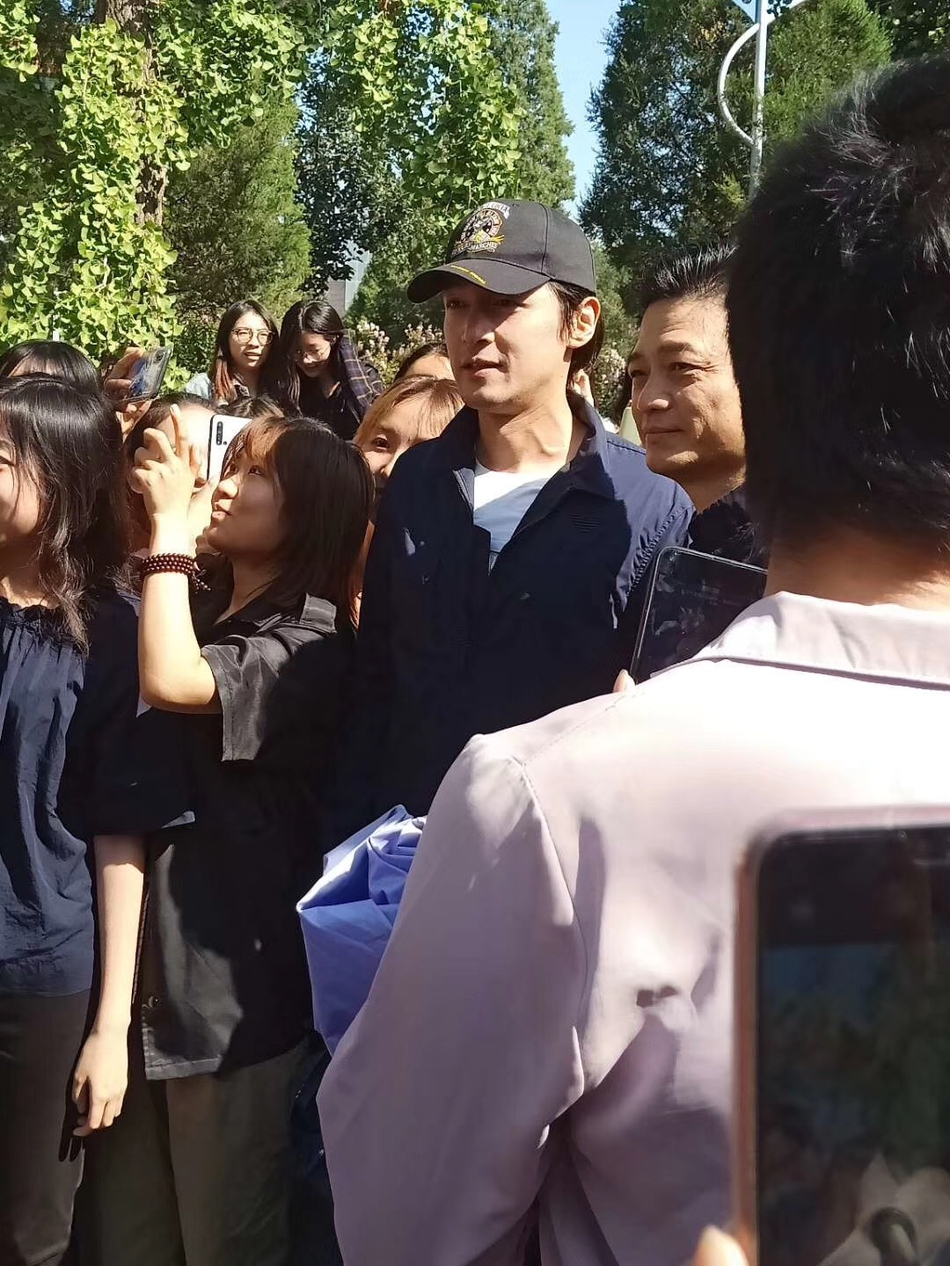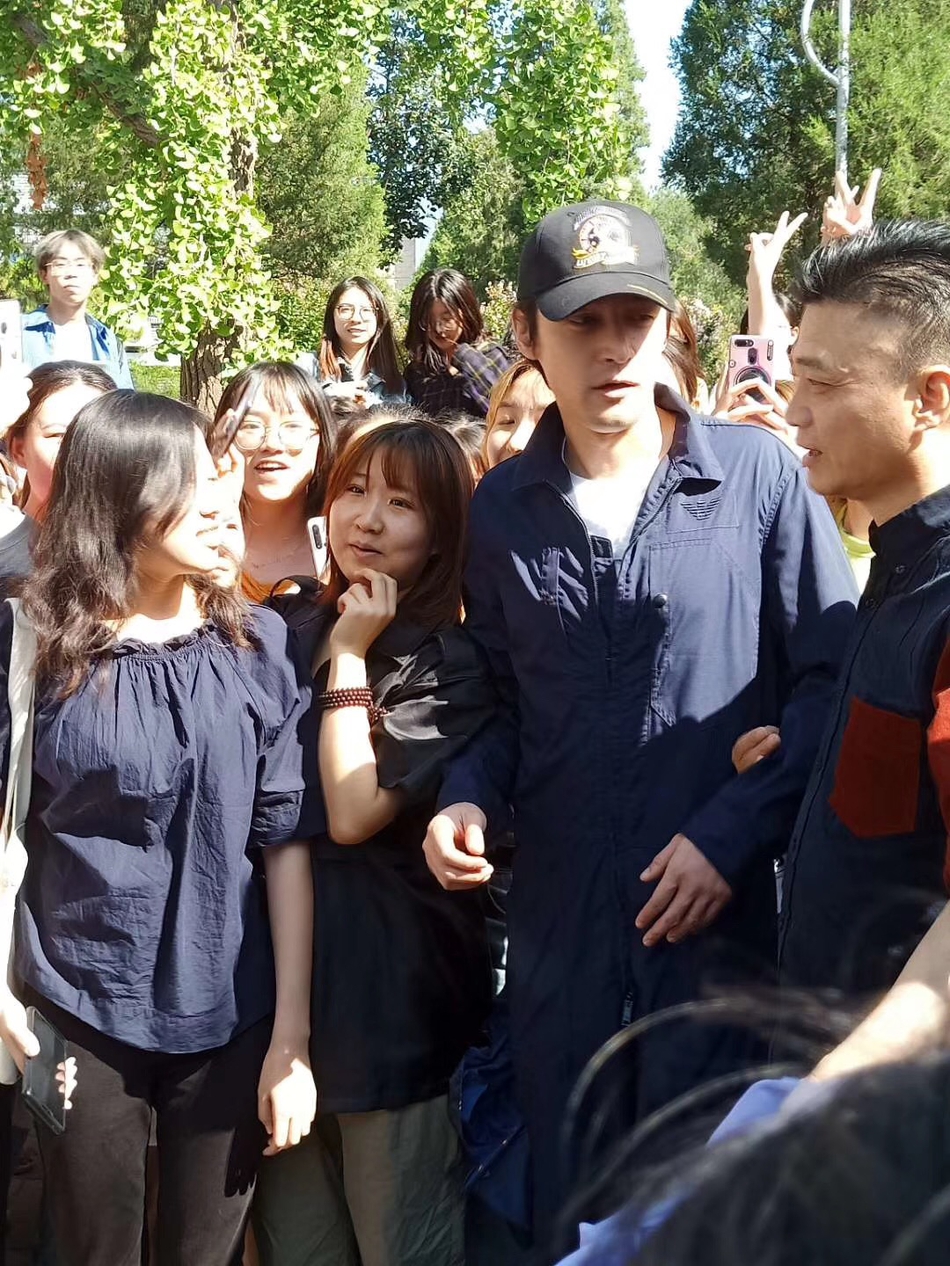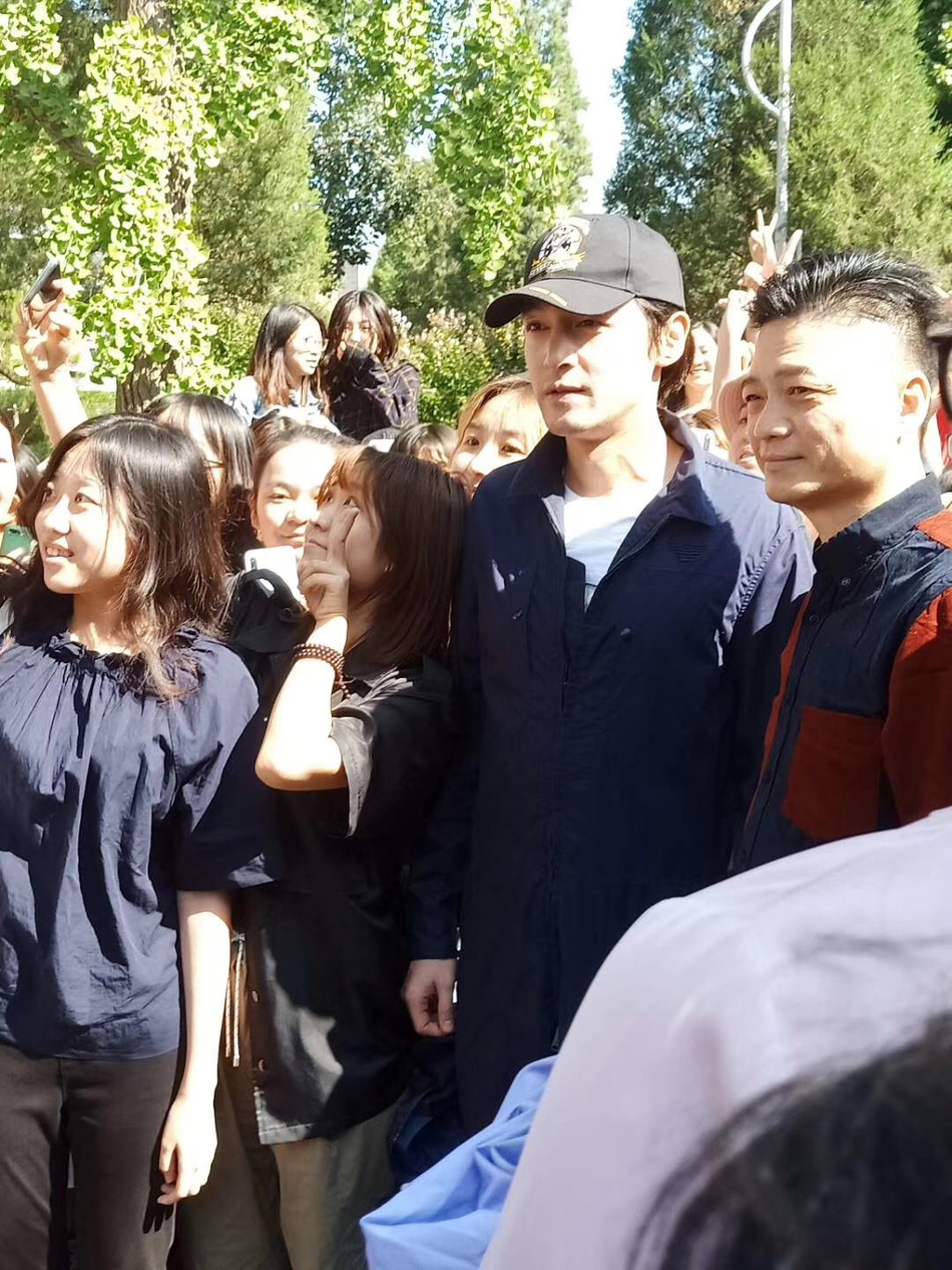 有網友曬出一組在中國傳媒大學校園中偶遇胡歌與崔永元的照片。照片中胡歌身穿連體工裝戴著鴨舌帽,低調現身,與學生大合影十分親切。