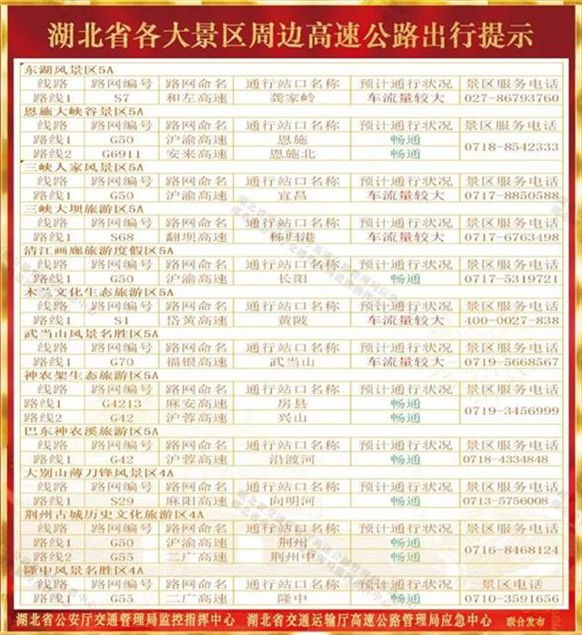湖北日報訊(記者彭小萍、通訊員李文宣、實習生趙雨泉)9月25日,湖北省交管局對外發布《2019年國慶假期湖北省高速公路出行指南》,為百姓假期出行提供指引和幫助。