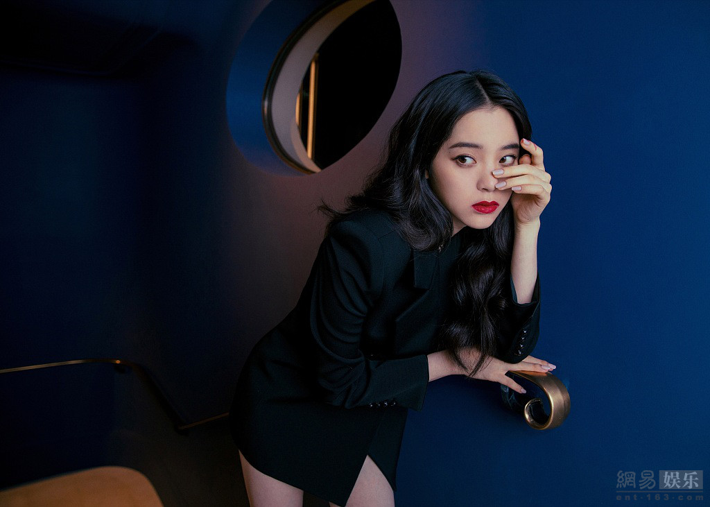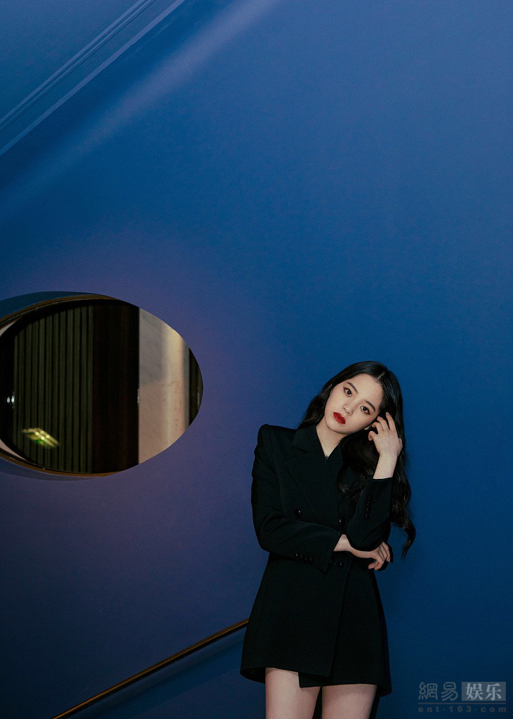 歐陽娜娜的一組寫真美圖曝光。歐陽娜娜身穿黑色西裝玩下衣失蹤,美腿纖細修長,涂紅唇化身酷女孩又美又颯。