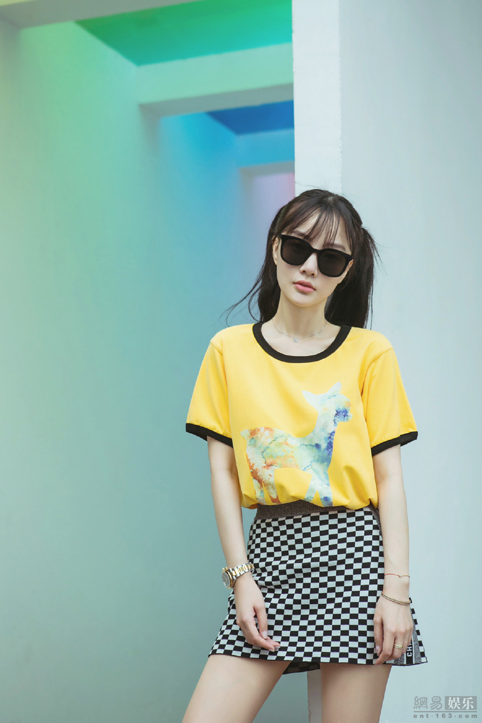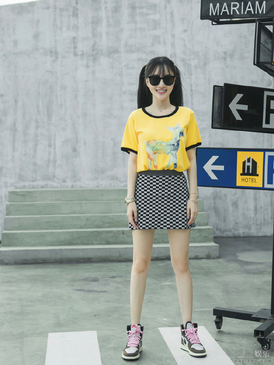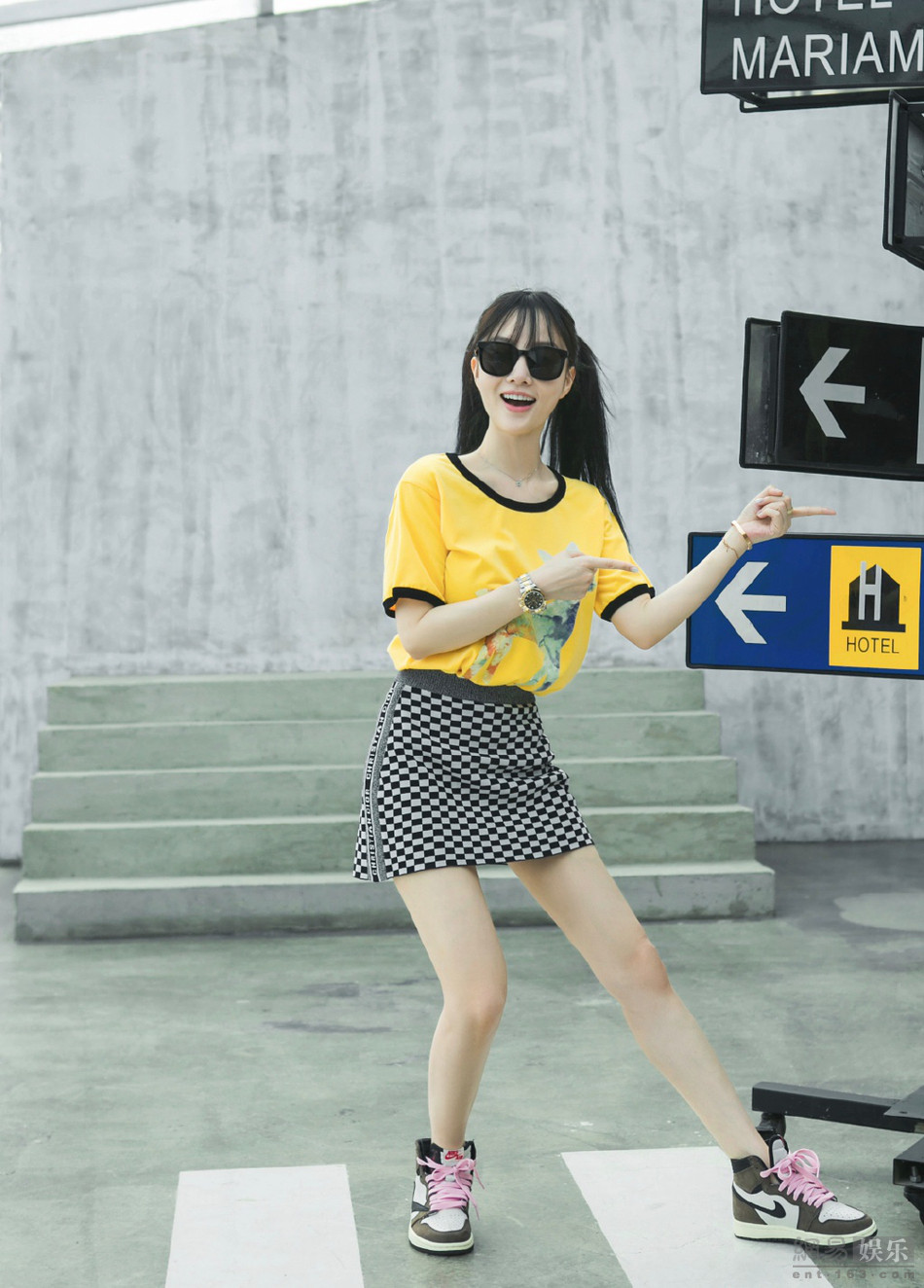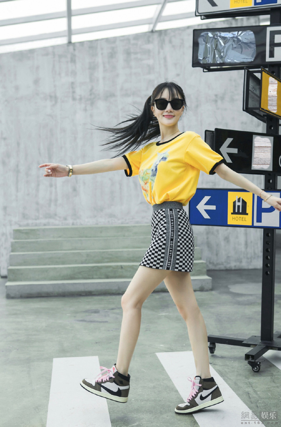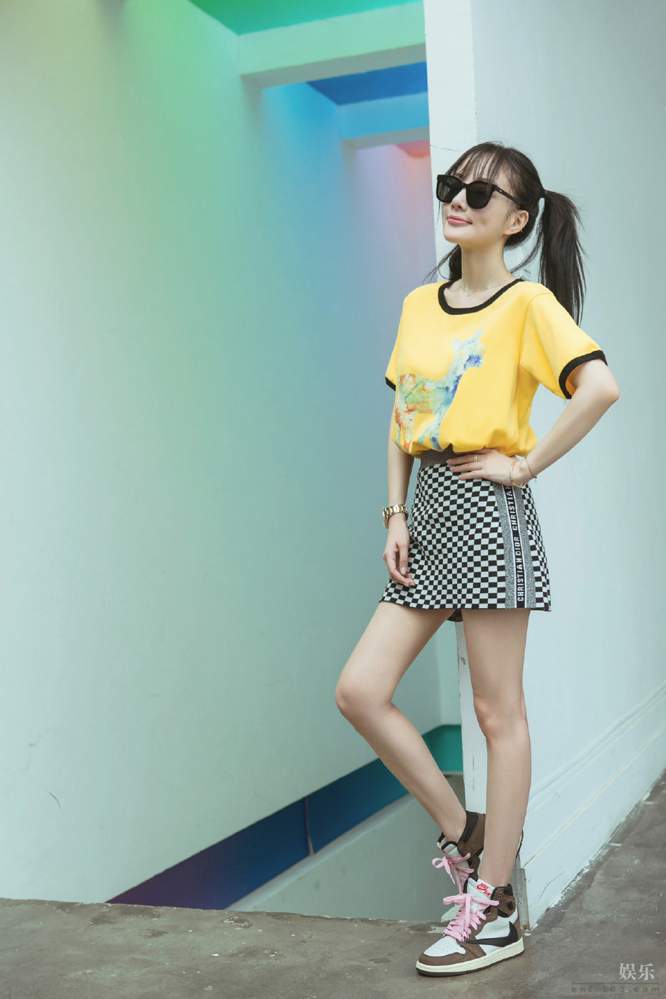 9月25日,李小璐工作室在微博曬出李小璐近照。照片中,李小璐身穿黃色T恤搭配格紋短裙,墨鏡遮面,扎著雙馬尾少女感十足。