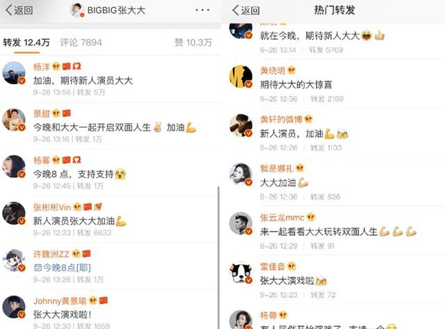 網易娛樂9月27日報道 9月26日,主持人張大大在社交平臺發布了一段視頻預告,并稱自己主演的一部網劇即將上映。這條動態發出后引發大半個娛樂圈的大咖藝人和流量偶像紛紛轉發,為他的宣傳捧場助威!