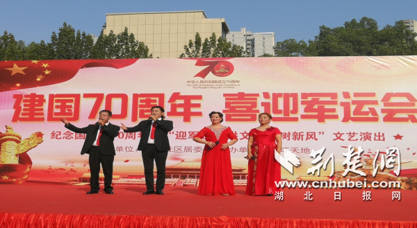 荊楚網客戶端—荊楚網消息(記者張揚)9月27日下午,為豐富社區居民文化生活,增強愛國情感,武漢市洪山區卓刀泉街五環社區舉辦“建國70周年 喜迎軍運會”文藝匯演活動。