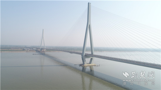 湖北交投總工程師裴炳志介紹,開工以來(lái),施工單位克服重重考驗(yàn),大力開展科技攻關(guān)和技術(shù)創(chuàng)新,成功攻克多項(xiàng)技術(shù)難題,目前已獲得專利18項(xiàng),省級(jí)工法3項(xiàng),創(chuàng)新成果29項(xiàng)。世界上首次實(shí)現(xiàn)全橋鋼箱梁面板U肋全熔透焊接,大幅提高橋面板耐久性;實(shí)現(xiàn)超大跨度斜拉橋千噸級(jí)寬幅PC節(jié)段箱梁標(biāo)準(zhǔn)化、工廠化預(yù)制拼裝,在世界橋梁建設(shè)史上尚屬首例,填補(bǔ)了混合梁斜拉橋全預(yù)制拼裝施工的空白。
