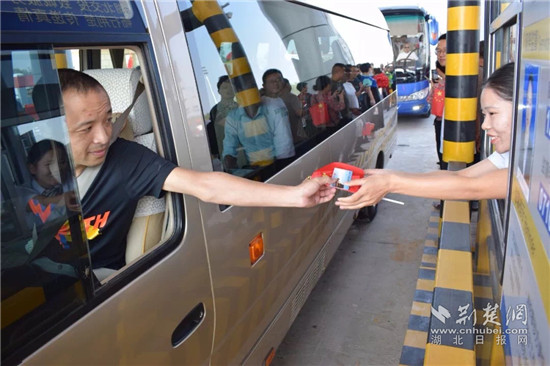 車輛取卡通過收費站進入高速。通訊員盧家國攝