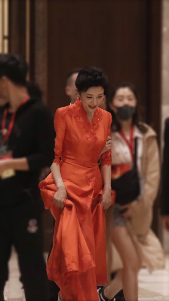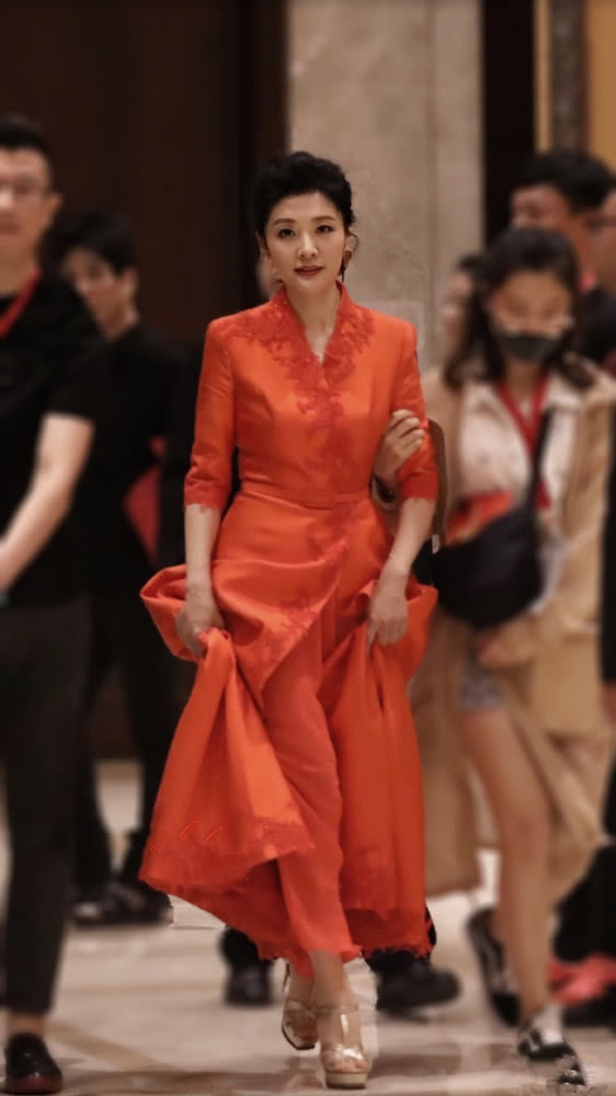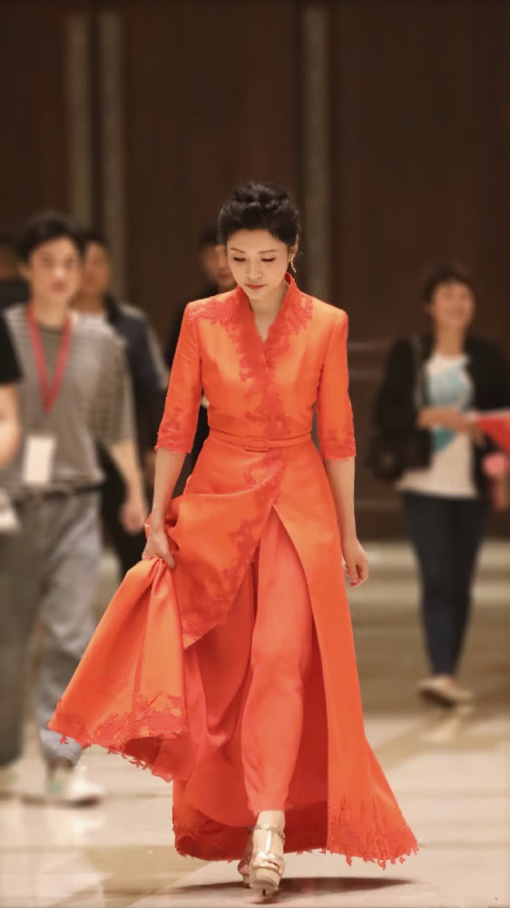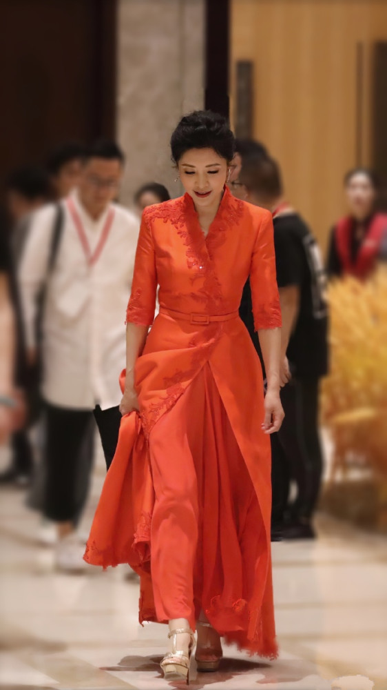 9月29日,有網友曬出一組周濤主持某晚會的照片。她穿著一襲中國紅長裙,走起路來裙擺在身邊飄蕩盡顯優雅氣質。將頭發高高盤起來,露出天鵝頸,一顰一笑一舉一動顯露一姐風范。