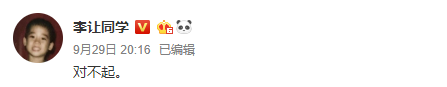 網(wǎng)易娛樂9月30日報(bào)道 近日,《偶像練習(xí)生》選手李讓評論了有關(guān)自己、林彥俊、尤長靖的小說,寫道:“精彩,就是尺度稍稍有點(diǎn)過”。9月29日,李讓通過微博發(fā)文道歉,“糟糕,這回玩笑開過頭了,我要避一陣風(fēng)頭,朋友們再見!”“閃之前鄭重的在這里向林彥俊的粉絲們道歉!對不起!”隨后他又刪除該條微博,重新發(fā)了一條,僅有“對不起”三個(gè)字。