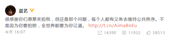 微博發(fā)出后,不少網友紛紛評論表示:“遵守公共秩序,人人有責 ,理智追星,拒絕代拍”。
