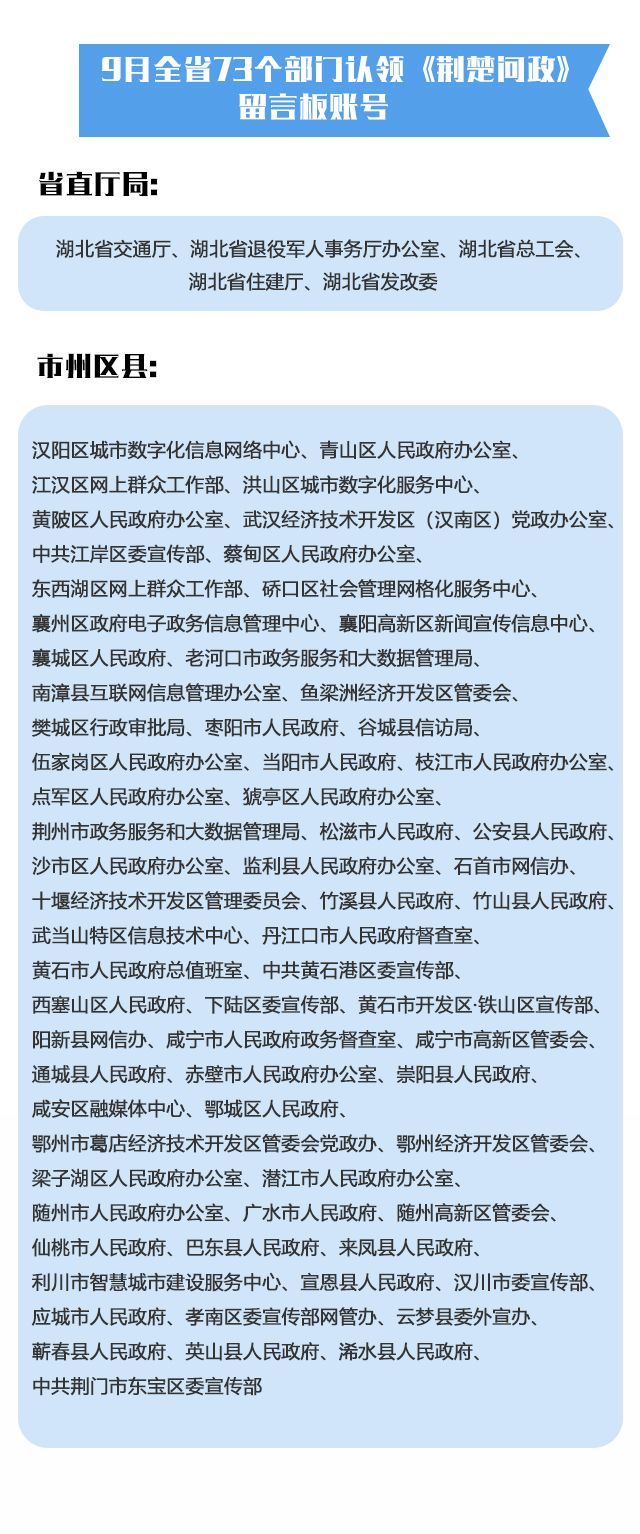 9月,湖北省發(fā)改委、宣恩縣人民政府、隨州高新區(qū)等單位認(rèn)領(lǐng)了《荊楚問(wèn)政》平臺(tái)賬號(hào)。