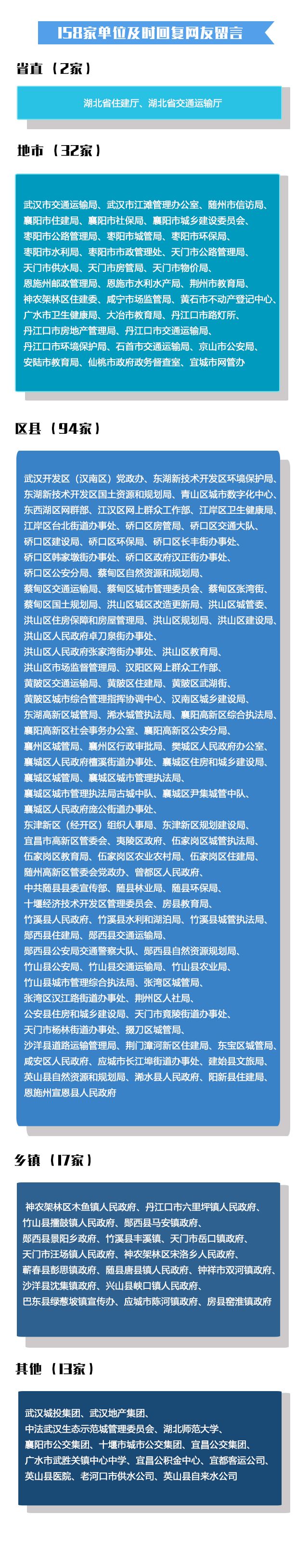 湖北省內(nèi)各入駐單位及時(shí)回復(fù)網(wǎng)友留言,響應(yīng)群眾關(guān)切,欄目組代表廣大網(wǎng)友表示誠(chéng)摯感謝!