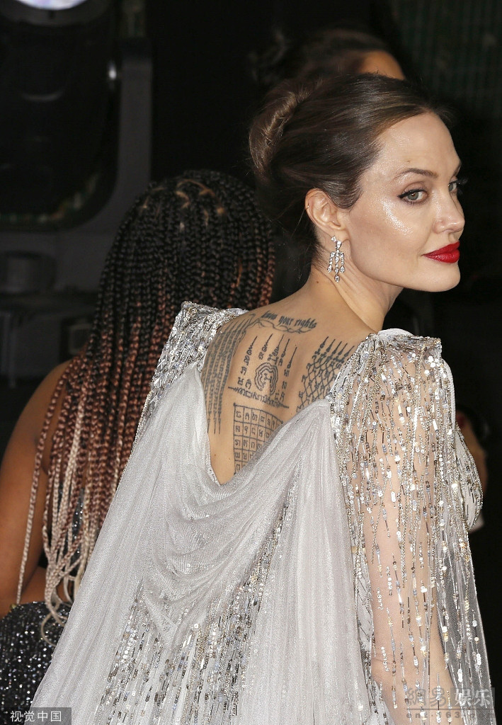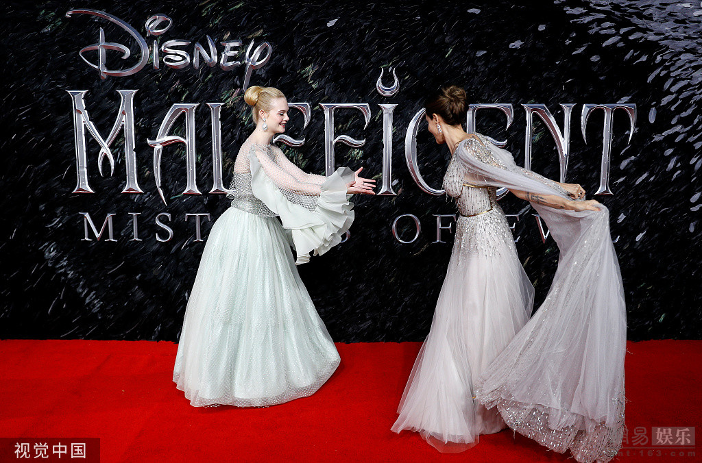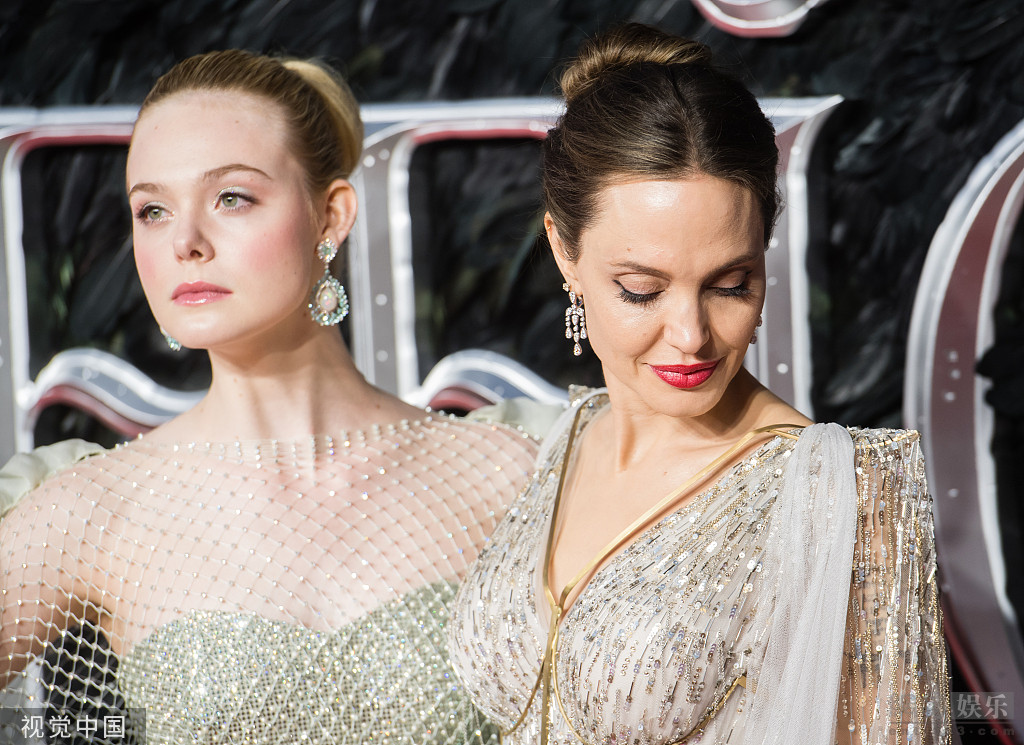 9日,英國倫敦,電影《沉睡魔咒2》(Maleficent: Mistress of Evil)首映。安吉麗娜·朱莉(Angelina Jolie)攜兒女溫馨亮相,身穿亮片裙大秀美背氣場全開,涂紅唇美艷絕倫。艾麗·范寧(Elle Fanning)一襲紗裙笑容甜美動(dòng)人似小仙女。兩人神仙顏值同框各有特色。