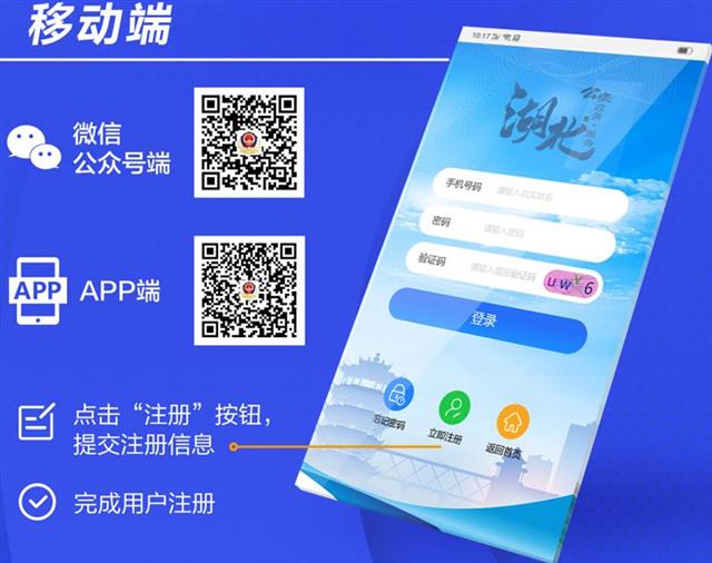 平臺在PC端、移動端同時上線,群眾可通過打開網址 wsgaj.chutianyun.gov.cn,點擊“個人中心”登錄注冊;或關注“湖北公安政務服務平臺”微信公眾號,下載“湖北公安政務服務平臺”APP等三種方式,用身份證號“實名、實證、實人”注冊登錄平臺使用。“湖北公安政務服務平臺”還深度對接省政府“一張網”和“鄂匯辦”,省政府“一體化”平臺用戶可直接登錄應用,無需二次注冊。掃描一下二維碼下載吧。