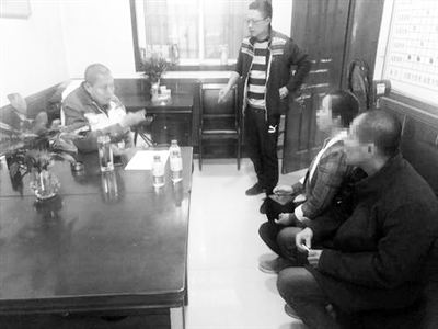 “大雷”的父母到城關環衛局感謝楊軍(左一)。 蘭州晨報/掌上蘭州記者 姚智 攝