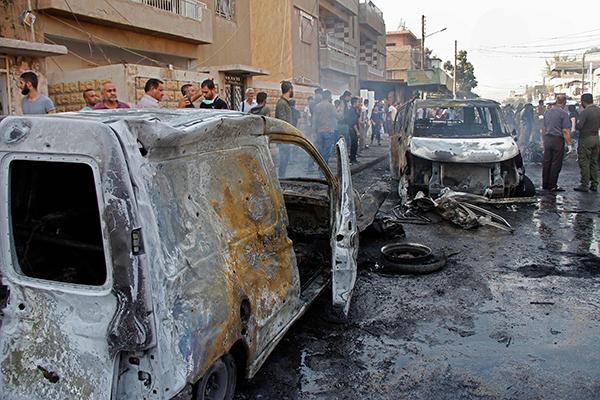 當地時間2019年10月11日,敘利亞卡米什利,敘利亞東北部邊境城市卡米什利11日下午發生一起汽車爆炸襲擊,至少3人在襲擊中身亡。視覺中國 圖據路透社11日報道,庫爾德武裝“敘利亞民主軍”(SDF)下屬負責內部安全的Asayish部隊表示,其控制的敘土邊境城市卡米什利發生了一起汽車炸彈襲擊事件。一輛滿載炸藥的汽車在一處人口密集的居民區內的餐廳附近被引爆,造成至少3名平民身亡,9人受傷。