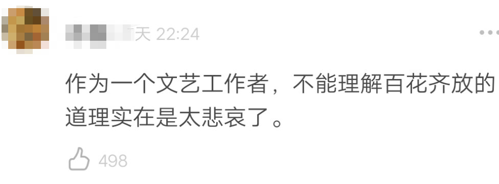 指責(zé)他應(yīng)該明白文藝作品百花齊放的道理。