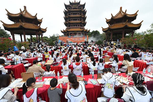 近千名小朋友和家長們一起手繪黃鶴樓(通訊員供圖)