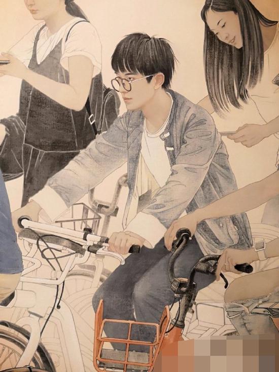 畫面中是一群人騎著各種品牌的共享單車,但細(xì)心的網(wǎng)友發(fā)現(xiàn),唯有易烊千璽的單車是“私人訂制”,他們表示這幅圖畫里的易烊千璽與其在丹麥騎車時(shí)候的照片相似度極高,從發(fā)型、眼鏡、車子樣式、服裝,甚至車筐里的礦泉水瓶都完美復(fù)制。粉絲們不禁猜測畫作的作者是一位“千紙鶴”,他們連連感嘆:“我該夸誰,作者還是畫中人?”“是我的優(yōu)秀寶貝。”“千紙鶴厲害!易烊千璽從丹麥騎到中國美術(shù)館了!”