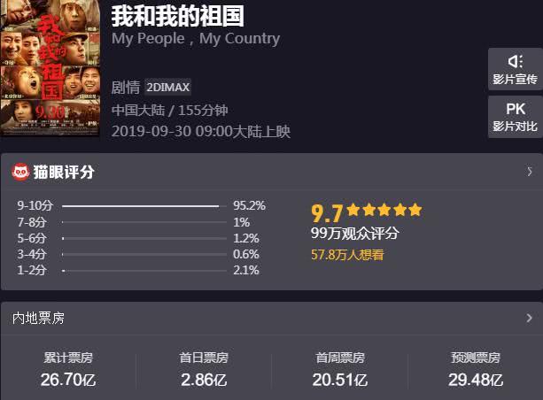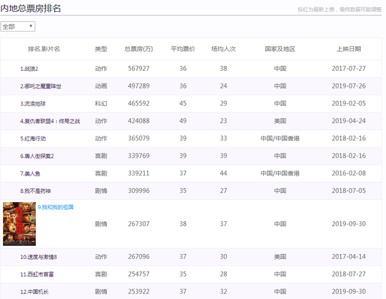 網易娛樂10月17日報道 10月16號,《我和我的祖國》總票房破26.7億,強勢超越《速度與激情8》,位居中國影史票房第9名。