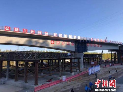 中新社哈爾濱10月17日電 (記者 史軼夫)中鐵四局牡佳一標段項目部17日發布消息,牡丹江特大橋128米連續梁順利合龍。標志著中國最東端高鐵——牡佳客專建設取得重要進展。