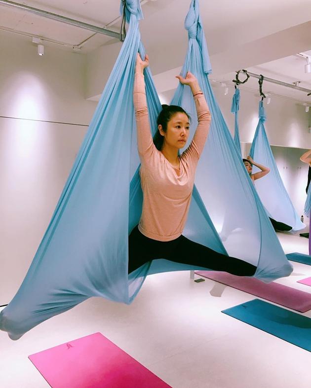 林心如素顏練空中瑜伽還自嘲“老骨頭”
