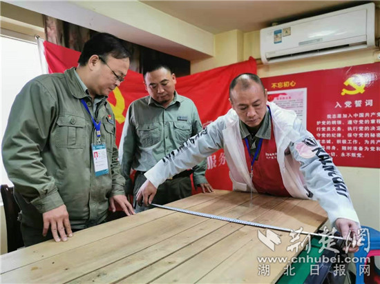 “沒有桌子,總不能在麻將機上開會吧。”話音剛落,譚擁軍搬來幾塊木板,“把木板蓋在麻將機上,可以當會議桌。”量尺寸、切割,拼接,全體黨員經過兩個小時的努力,臨時黨員活動室建設完成。“你們的效率真高,我也是一名黨員,這個黨員活動室給你們免費使用。”賓館經理向保電黨員豎起了大拇指。