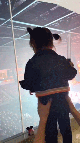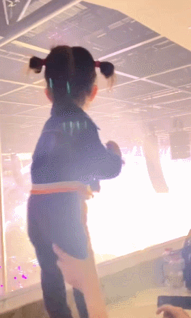 視頻中,大女兒Chantelle穿著一身牛仔衫,扎著哪吒頭,背影十分靈動可愛,她站在臺下手舞足蹈的學爸爸跳舞,偶爾側過頭露出乖巧側顏。