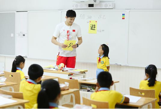 首期節目中,中國游泳隊的領軍人物孫楊走進淳安縣富文鄉中心小學,為當地的孩子們帶來了一堂別開生面的趣味教學。一出場,孫楊就因兩米的“巨型”身高,牢牢吸引了學生的目光。