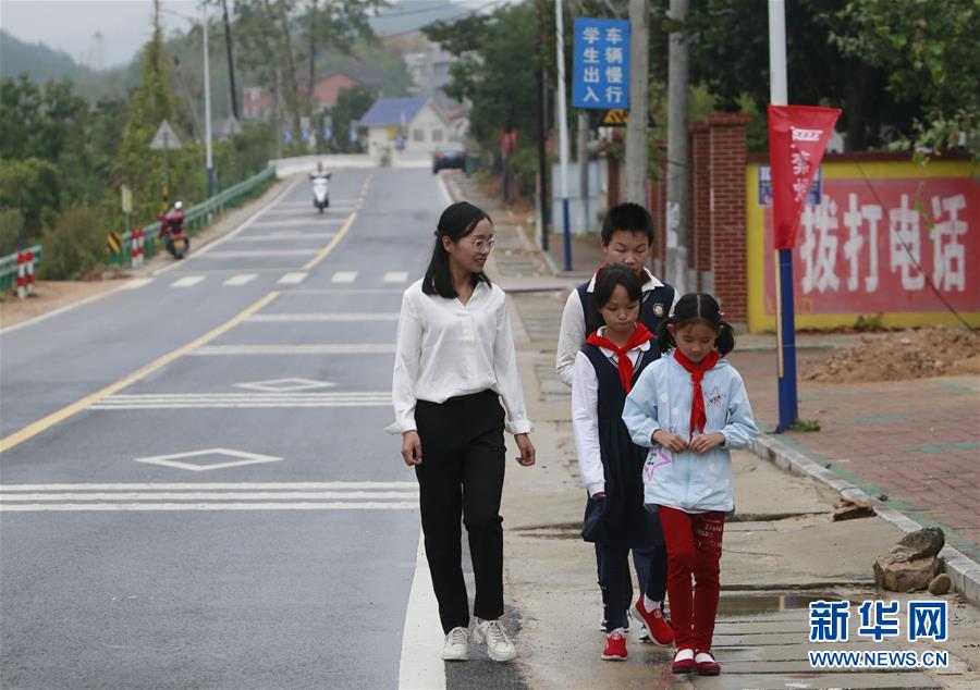 放學后,方榮送學生回家(10月11日攝)。新華社記者 姚琪琳 攝