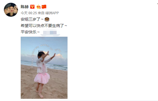 網易娛樂10月23日報道 10月23日凌晨,陳赫曬出一張女兒安安的照片,并在配文中為她慶生:“安姐三歲了~希望可以快點不要生病了~平安快樂~”照片中的安安身穿粉色紗質公主裙,光腳在海邊沙灘上玩得不亦樂乎。