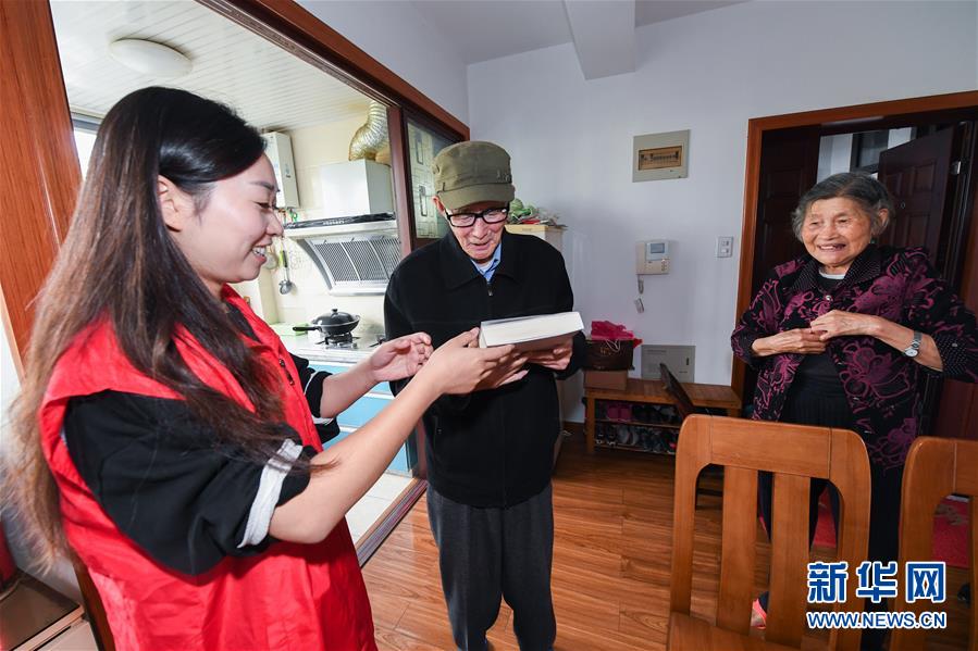 10月23日,雉城街道所前社區的黨員志愿者上門為88歲的許振亞老人(中)送上他“微心愿”所需要的書籍和老花眼鏡。 從2019年9月開始,浙江省長興縣雉城街道積極開展“不忘初心 牢記使命”主題教育,雉城街道下轄各個社區的黨員志愿者們開展“認領微心愿 上門送服務”活動。黨員志愿者們上門收集轄區困難戶、困難兒童和獨居、孤寡老人的“微心愿”,并結對幫助實現這些“微心愿”,同時黨員志愿者們還積極響應“最多跑一次”,為轄區需辦證人員代辦并上門送上辦好的老年卡、殘疾人證等。 新華社記者 徐昱 攝