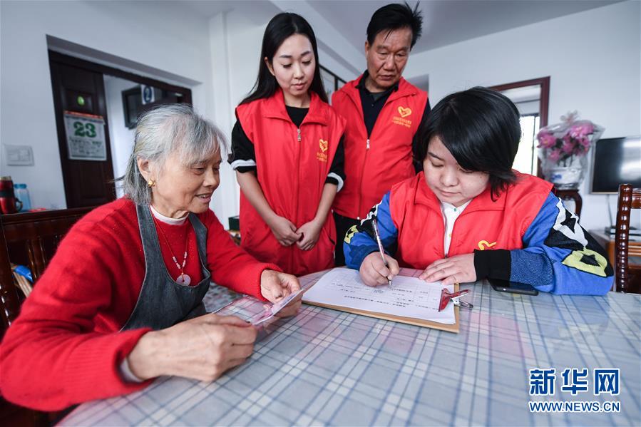 10月23日,雉城街道所前社區的黨員志愿者上門為72歲的吳阿寶老人(左一)記錄她的“微心愿”。 從2019年9月開始,浙江省長興縣雉城街道積極開展“不忘初心 牢記使命”主題教育,雉城街道下轄各個社區的黨員志愿者們開展“認領微心愿 上門送服務”活動。黨員志愿者們上門收集轄區困難戶、困難兒童和獨居、孤寡老人的“微心愿”,并結對幫助實現這些“微心愿”,同時黨員志愿者們還積極響應“最多跑一次”,為轄區需辦證人員代辦并上門送上辦好的老年卡、殘疾人證等。 新華社記者 徐昱 攝