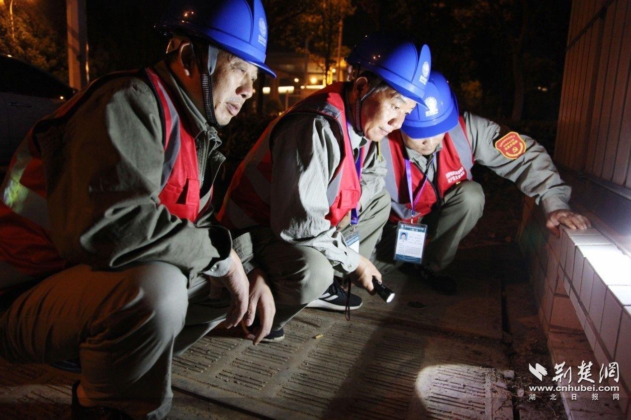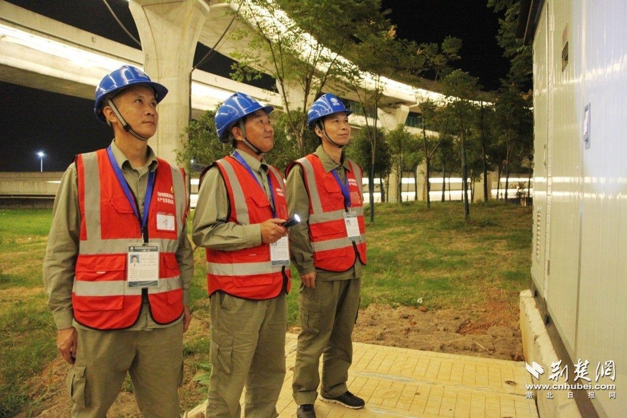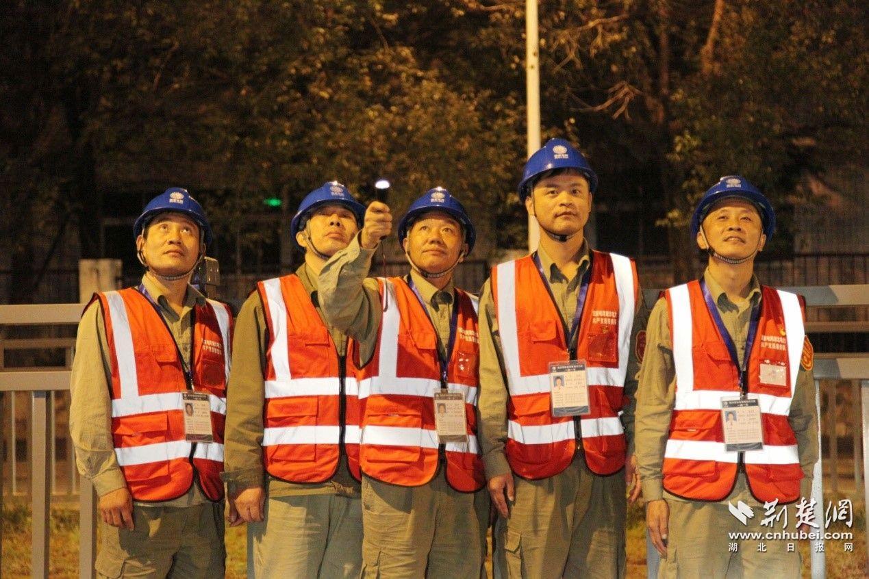 嘉魚縣供電公司退伍軍人保電隊員在夜間檢查用電設備。(通訊員供圖)