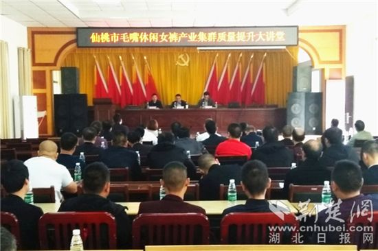 荊楚網客戶端—荊楚網消息(記者張茜 通訊員易玲娜)10月24日,湖北省標準化與質量研究院組織專家團隊走進仙桃市毛嘴鎮,開展“毛嘴休閑女褲產業集群質量提升大講堂”活動,毛嘴服裝產業園80余家企業的100余名代表參加活動。