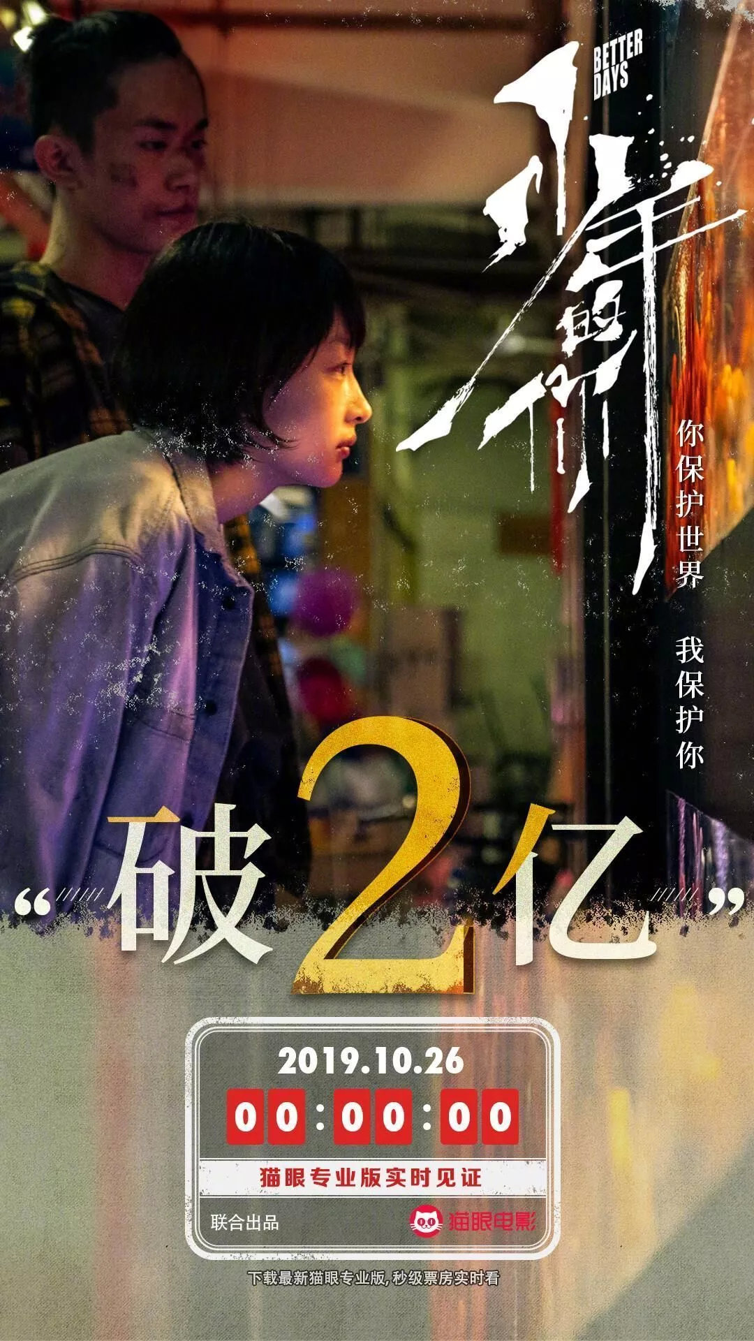 原定于6月27日上映的《少年的你》,延遲4個月后,終于在昨日正式上映。上映7個小時票房破億,一天突破2億。