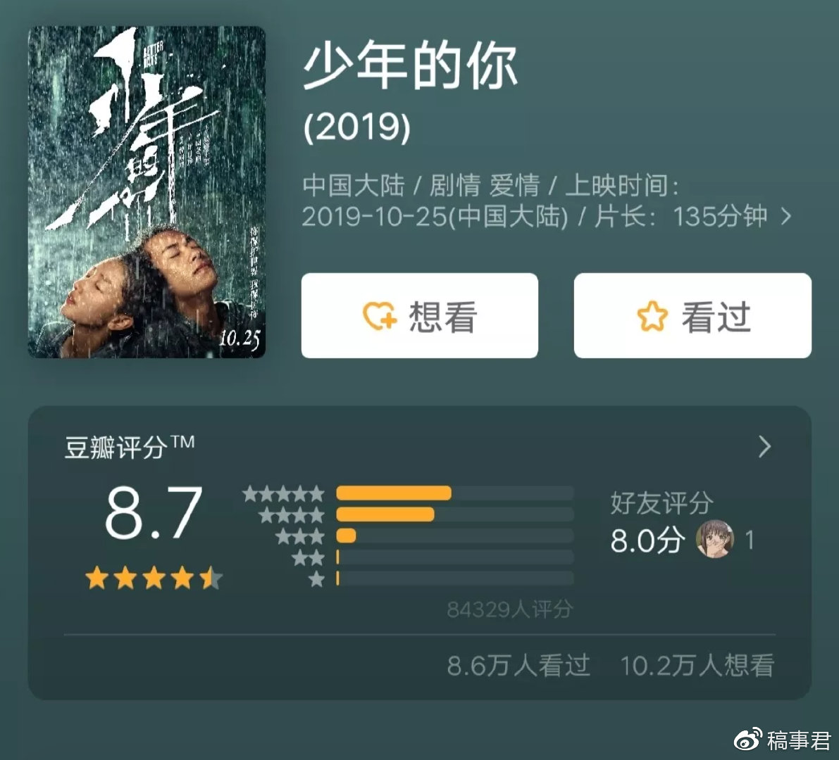 《少年的你》可算是“好飯不怕晚”,口碑票房雙豐收。