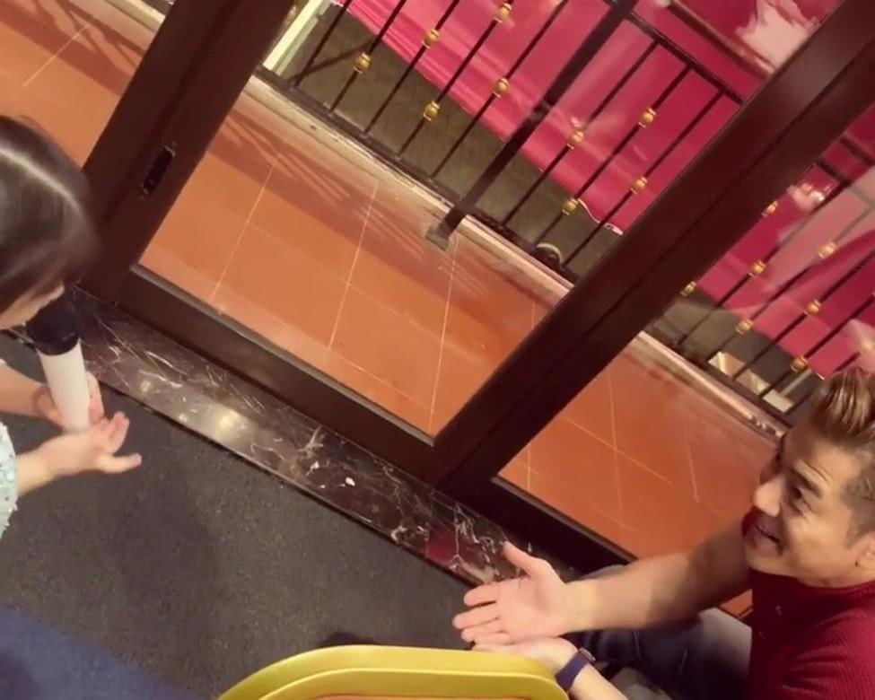 26日晚上,方媛還在社交網站上傳了女兒C寶為父親慶生的畫面,郭富城蹲下身子牽著C寶的小手,父女上演有愛一幕。視頻中C寶拿著麥克風用普通話說“祝你生日快樂”,郭富城則露出滿臉慈父的笑容,然后對C寶說“謝謝”。