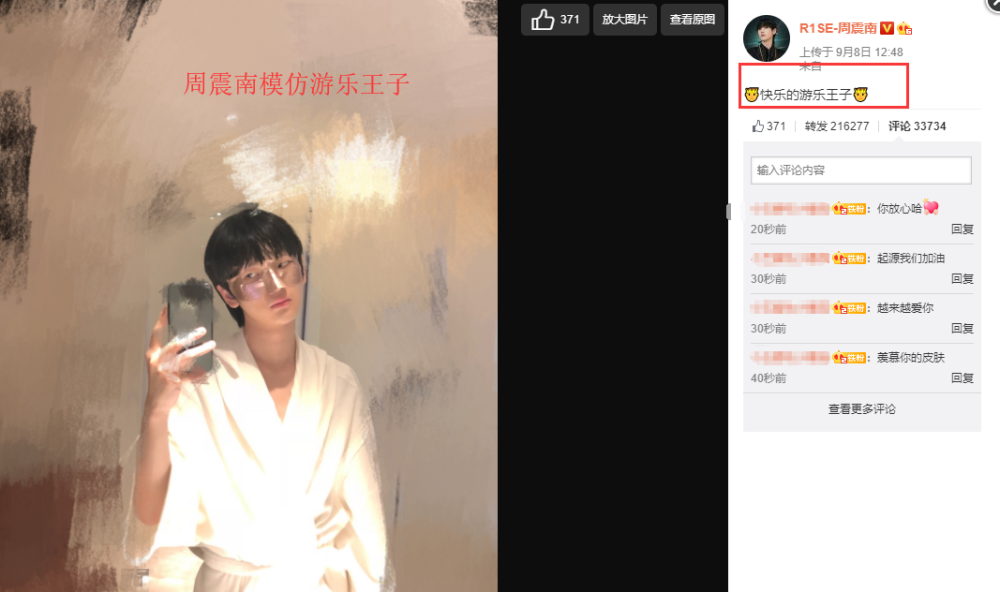 事后周震南發(fā)微博回應(yīng)此事,又被發(fā)現(xiàn)在用2G網(wǎng),因此被貼上了“從不上網(wǎng)”“有點(diǎn)呆萌”的標(biāo)簽。