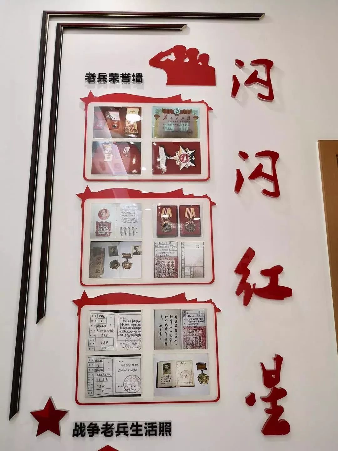 另外,社區還在退役軍人服務站設立“閃閃紅星”榮譽墻,陳列轄區退役軍人榮獲的勛章、證書,展示英雄老兵的往昔風采。