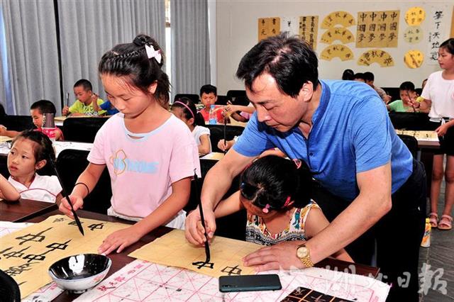 精準扶貧湖北省文聯2019年暑期少兒書法公益培訓班為留守兒童輔導書法