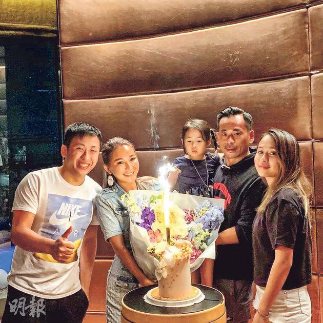 正宮陳慧玲(左二)生日,周焯華(右二)與子女為她慶祝,畫面溫馨。