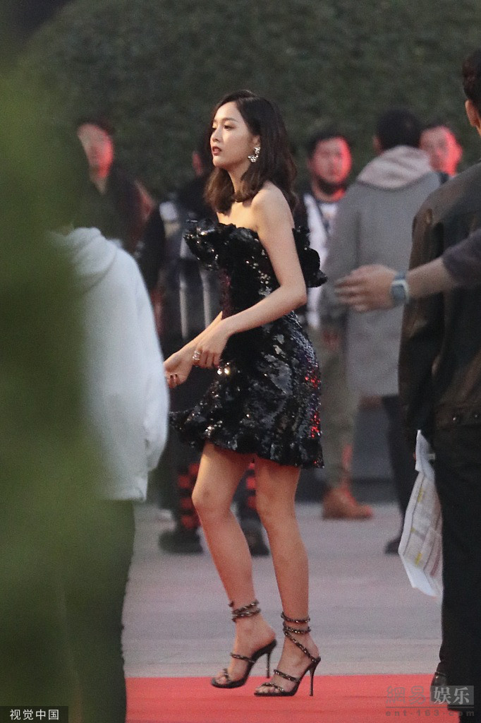 2019年10月31日,北京,火箭少女全員現身亞洲新歌榜上班。吳宣儀穿黑色亮片裙閃耀迷人,身材纖細。