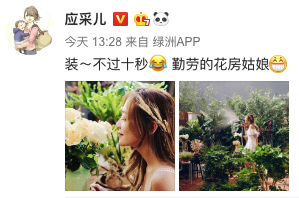 網(wǎng)易娛樂11月3日報道 11月3日,應(yīng)采兒化身花房姑娘,前一秒還是穿著白裙,閉著眼聞著花香,恬靜溫柔的花中精靈女神,下一秒就變成了拿著花灑,勤懇干活,表情夸張的“女神經(jīng)”,連應(yīng)采兒自己都說:“裝~不過十秒,勤勞的花房姑娘。”這樣灑脫,真實,毫不修飾的性格也是讓人很喜歡了。