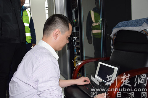 工作人員正在進行ETC門架系統與機房設備聯網調試。 通訊員 供圖