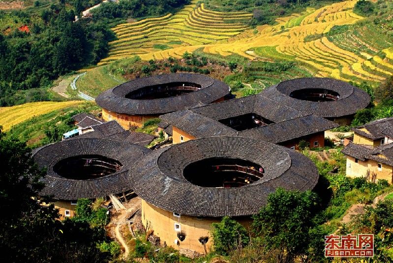 俗稱“四菜一湯”的南靖田螺坑土樓群是福建土樓的代表性建筑。黃亮忠 攝