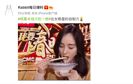 網易娛樂專稿11月10日報道 近日,楊冪現身某節目,她在節目中品嘗米線時,僅吃一根引發熱議。據悉,女明星們為了保持身材上鏡好看,對飲食都十分注意,食量非常小。此前,章子怡在戛納電影節時也自曝,吃泡面僅吃幾根,不得不說女明星為了保持好身材真拼!