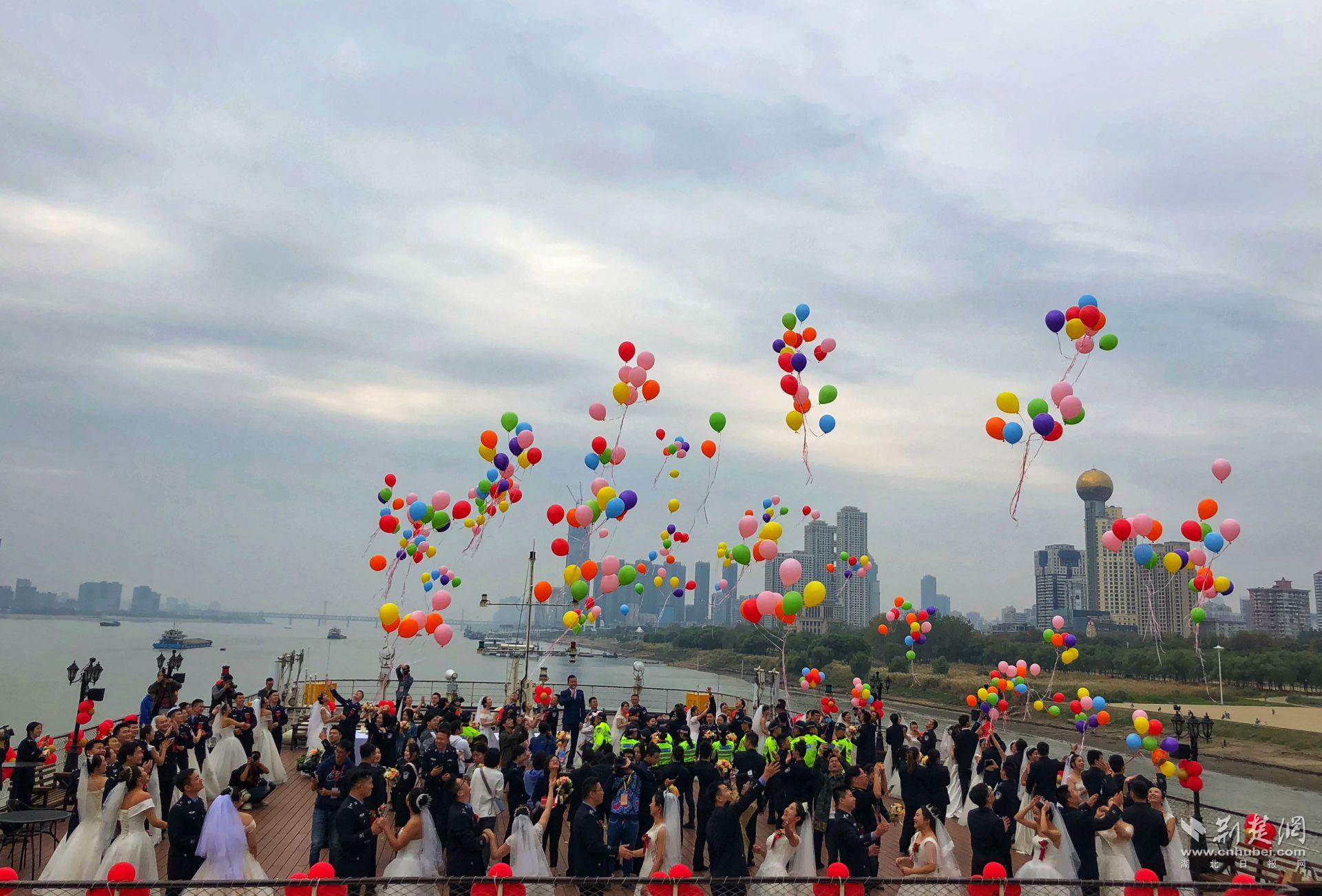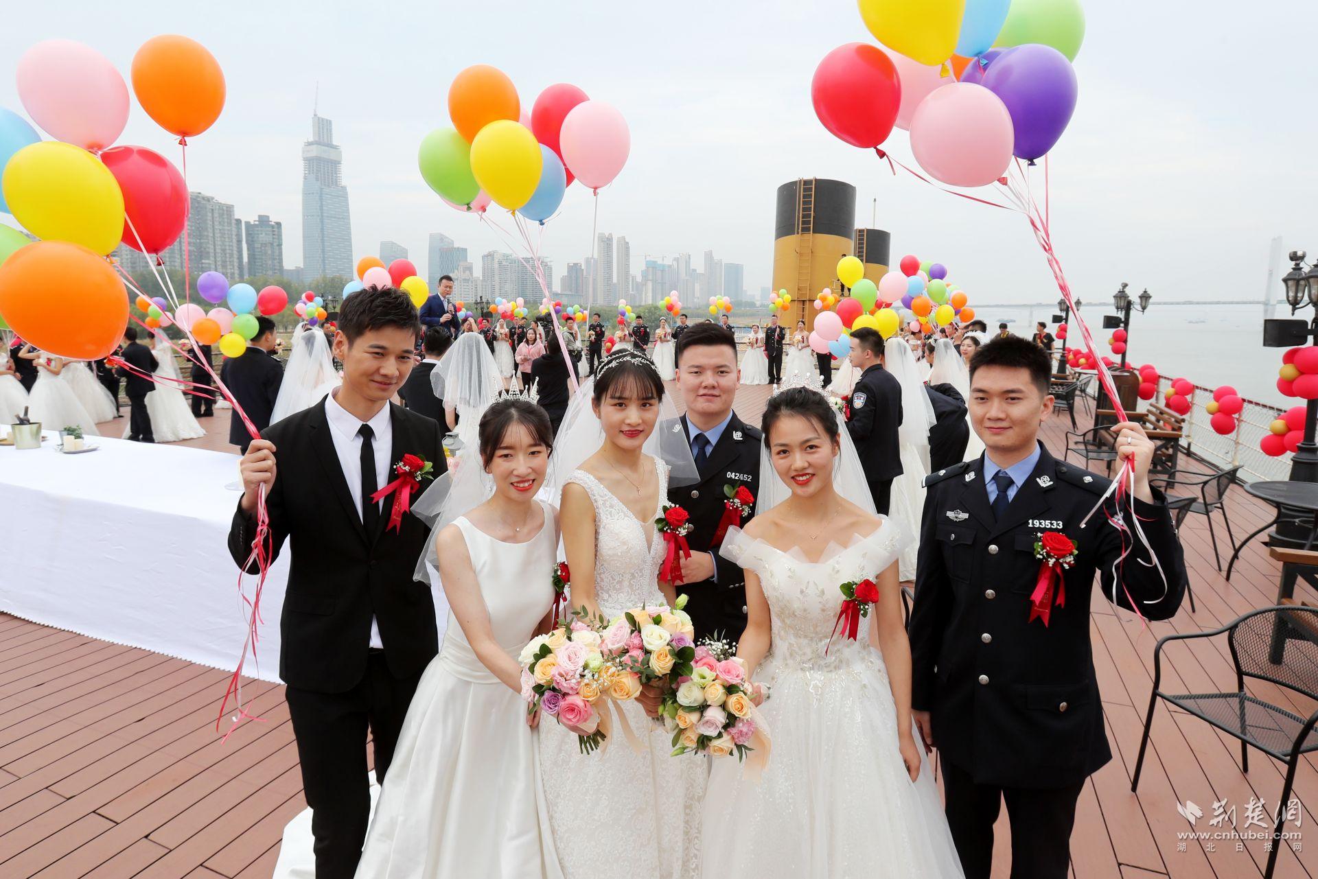 荊楚網(wǎng)客戶端—荊楚網(wǎng)消息(通訊員王威 應(yīng)后威)知音為媒,長江作證。11月12日上午,在歡快的樂曲和汽笛的長鳴聲中,“2019漢警集體婚禮”在漢口江灘“知音號(hào)”游輪上舉行,來自武漢市公安局和武漢鐵路公安局的41對(duì)新人同時(shí)喜結(jié)良緣。